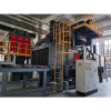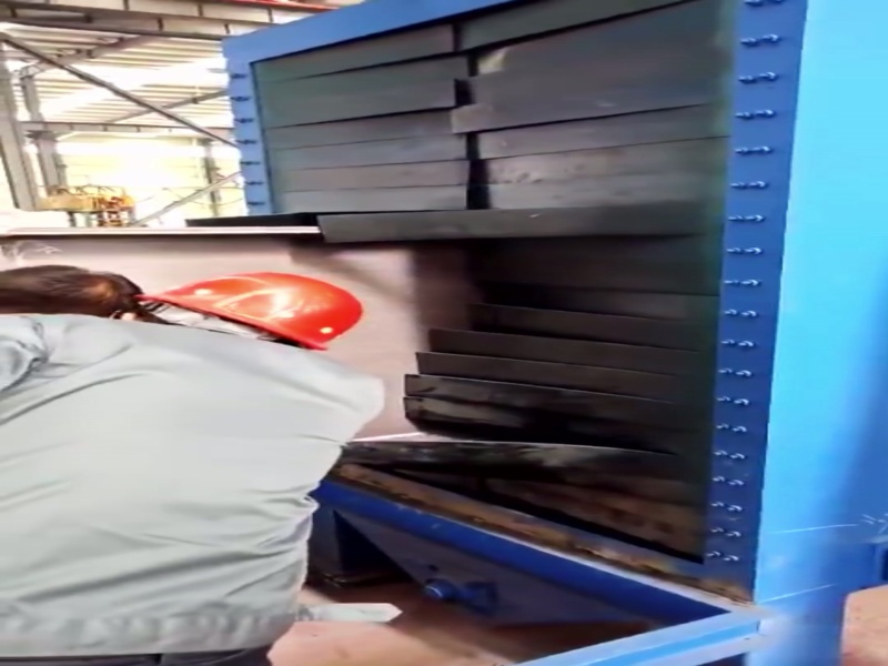 Roller through type shot blasting cleaning equipment is able to work continuously. It removes oxide skin, cleans and pre-treats various steel materials, such as steel plate, rolled steel, steel beam, structural steel, steel tube and steel casting by a kind of continuous through type way. During the cleaning process, speed adjustable transfer table delivers steel structure or steel material to the shot blasting area in the cleaning chamber. All surfaces are subjected to strong and intensive hit and friction of shots from different coordinate directions in order to remove the oxide skin, rust layer and dirt on it rapidly. Then, the surface of steel material obtains clean surface with certain roughness. The work piece is loaded and discharged on the inlet and outlet table at two sides of cleaning chamber. The shot and rust dust which fall on the steel material is blew away by blowing device. The purified shot after separation can be recycled for shot blasting. The dust that is created during shot blasting cleaning is delivered to dust removal system by exhaust tube. The clean air after purification is discharged into the atmosphere.